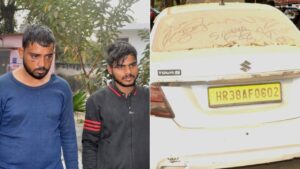 गाज़ियाबाद। थाना विजयनगर क्षेत्र में टैक्सी चालक की हत्या कर उसकी कार लूटने वाले दो शातिर आरोपियों को स्वाट टीम नगर जोन और थाना विजयनगर पुलिस टीम ने संयुक्त कार्रवाई के तहत गिरफ्तार कर लिया। आरोपियों से मृतक का मोबाइल फोन, वाहन से संबंधित दस्तावेज, आधार-पैन कार्ड समेत महत्वपूर्ण सामान बरामद किया गया हैं। दरअसल, 20.11.2025 को दिल्ली–मेरठ एक्सप्रेसवे पर अंतिरिक्ष बिल्डिंग के सामने खड़ी HR38AF0602 स्विफ्ट डिजायर कार में पीछे की सीट पर एक व्यक्ति का शव मिलने की सूचना पर पुलिस तत्काल मौके पर पहुंची। शव की पहचान हरिराम पौदार (कार चालक) के रूप में हुई। मौके पर पंचायतनामा व पोस्टमार्टम की कार्रवाई कराई गई एवं परिजनों को सूचना दी गई। वहीं, 01.12.2025 को मृतक के पुत्र संजय कुमार ने थाना विजयनगर पर तहरीर देकर बताया कि अज्ञात व्यक्तियों ने उनके पिता की गाड़ी बुक कर गाड़ी छीनने के इरादे से उनकी हत्या कर दी। पुलिस ने गंभीर धाराओं में मुकदमा दर्ज कर जांच प्रारंभ की।