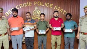 गाज़ियाबाद। पुलिस को साइबर अपराध के खिलाफ बड़ी सफलता मिली हैं। थाना साइबर क्राइम पुलिस ने बीमा पॉलिसी के नाम पर लोगों से ठगी करने वाले एक अंतर्राज्यीय गिरोह का पर्दाफाश करते हुए पांच आरोपियों को गिरफ्तार किया हैं। पुलिस ने आरोपियों के कब्जे से मोबाइल फोन, एटीएम कार्ड, सिम कार्ड, एक कार और नगदी बरामद की हैं। पुलिस के अनुसार, साइबर क्राइम थाना टीम ने थाना विजय नगर क्षेत्र से पांच आरोपियों को गिरफ्तार किया। गिरफ्तार आरोपियों की पहचान सुनील मिश्रा, पवन यादव, राहुल मिश्रा, जितेंद्र सिंह और दीपक कुमार के रूप में हुई हैं। आरोपियों के कब्जे से 10 मोबाइल फोन, 16 एटीएम कार्ड, 11 सिम कार्ड, एक कार और 74 हज़ार रुपये नगद बरामद किए गए हैं। जांच में सामने आया हैं कि यह गिरोह खुद को विभिन्न बीमा कंपनियों का प्रतिनिधि बताकर पॉलिसीधारकों को फोन करता था और पॉलिसी में रिफंड या अधिक लाभ दिलाने का झांसा देकर टैक्स व प्रोसेसिंग फीस के नाम पर पैसे ट्रांसफर करा लेता था। ठगी के बाद आरोपी भारतीय रिजर्व बैंक, बीमा लोकपाल और आयकर विभाग के नाम से फर्जी दस्तावेज तैयार कर व्हाट्सएप के जरिए पीड़ितों को भेजते थे, ताकि उन्हें विश्वास दिलाया जा सके। पुलिस जांच में यह भी सामने आया कि गिरोह का एक सदस्य Canva ऐप की मदद से नकली पॉलिसी और रसीदें तैयार करता था। आरोपियों के मोबाइल फोन से कई फर्जी दस्तावेज और साइबर ठगी से जुड़े डिजिटल साक्ष्य भी बरामद हुए हैं। डीसीपी नगर धवन जायसवाल ने जानकारी देते हुए बताया कि, पूछताछ में पता चला हैं कि गिरोह ने महाराष्ट्र, पश्चिम बंगाल और गुजरात समेत चार राज्यों में करीब 1.5 करोड़ रुपये की साइबर ठगी को अंजाम दिया हैं। महाराष्ट्र के नासिक निवासी एक व्यक्ति से ही लगभग एक करोड़ रुपये की ठगी की गई थी। गिरोह के सदस्य आपस में “Chak De India” नाम के व्हाट्सएप ग्रुप के जरिए ठगी से संबंधित जानकारी साझा करते थे और नए शिकार तलाशते थे। पुलिस का कहना हैं कि गिरोह के अन्य फरार सदस्यों की तलाश की जा रही हैं। साथ ही बरामद बैंक खातों और डिजिटल साक्ष्यों के आधार पर अन्य मामलों की भी जांच की जा रही हैं। इस मामले में डीसीपी नगर धवन जायसवाल ने बताया कि साइबर ठगी के खिलाफ अभियान लगातार जारी रहेगा और आम जनता से भी सतर्क रहने की अपील की गई हैं।
