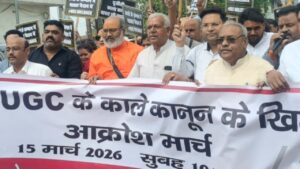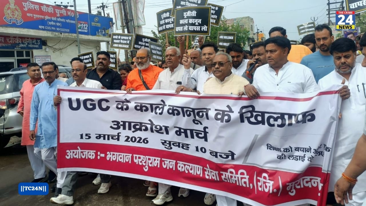 गाज़ियाबाद। मुरादनगर में रविवार को यूजीसी के विरोध में स्वर्ण समाज के लोगों ने विशाल विरोध प्रदर्शन किया। यह प्रदर्शन रामलीला ग्राउंड चुंगी नंबर-3 से शुरू होकर कस्बा रोड बाजार होते हुए बस स्टैंड मेट्रो स्टेशन स्थित डीसीपी ग्रामीण कार्यालय तक पहुंचा, जहां प्रदर्शनकारियों ने महामहिम राष्ट्रपति के नाम ज्ञापन सौंपा। प्रदर्शन में ब्राह्मण समाज, त्यागी समाज, ठाकुर समाज, वैश्य समाज समेत स्वर्ण समाज के सैकड़ों लोग शामिल हुए। सभी ने अपनी-अपनी संस्थाओं के लेटर पैड पर डीसीपी ग्रामीण को ज्ञापन देकर यूजीसी के प्रस्तावित नियमों को वापस लेने की मांग की। अखिल भारतीय परशुराम सेवा दल के राष्ट्रीय अध्यक्ष पंडित विनोद मिश्रा ने कहा कि यूजीसी द्वारा लाया जा रहा यह कानून स्वर्ण समाज के बच्चों के लिए घातक हैं और एकतरफा बनाया गया हैं। उन्होंने महामहिम राष्ट्रपति द्रौपदी मुर्मू से इस कथित काले कानून को तुरंत वापस लेने की मांग की। प्रदर्शनकारियों का कहना था कि यदि उनकी मांगों पर जल्द विचार नहीं किया गया तो आगे भी आंदोलन जारी रखा जाएगा। इस दौरान बॉबी पंडित (अध्यक्ष, भगवान परशुराम सेवा समिति), अरुण शर्मा, राकेश शर्मा (जिलाध्यक्ष ब्राह्मण समाज), प्रमोद कौशिक (नगर अध्यक्ष), ओमपाल शर्मा (विधानसभा अध्यक्ष), सतीश शर्मा (जिलाध्यक्ष त्यागी समाज दुहाई), व्यापार मंडल जिलाध्यक्ष ज्ञानेंद्र सिंगल, डासना मंदिर के महंत नरसिंहानंद, डॉ. पूनम त्यागी, आयुष त्यागी, मनोज शास्त्री, यति देव शर्मा, सोमदत्त शर्मा, नानक चंद शर्मा (राष्ट्रीय अध्यक्ष ब्राह्मण समाज हापुड़) और व्यापार मंडल अध्यक्ष मोहित गर्ग समेत कई सामाजिक संगठनों के पदाधिकारी और सदस्य मौजूद रहे।