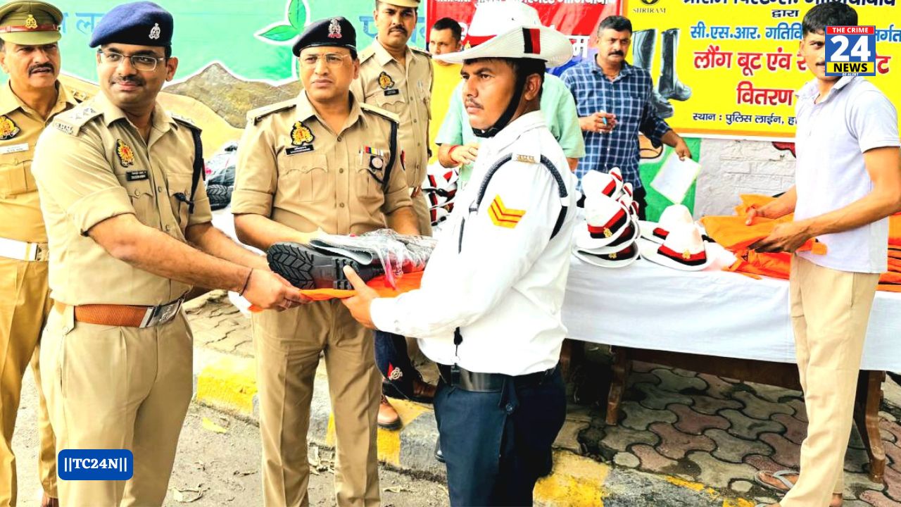 कांवड़ यात्रा ड्यूटी के दौरान बारिश से बचाव हेतु गाजियाबाद ट्रैफिक पुलिस को वितरित किए गए रेनकोट, रेनबूट व हैट